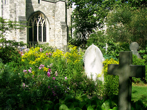 da mußte ich gerade mal laut lachen (tut gut) – ein Faible für Friedhöfe habe ich nicht, wir saßen im Innenhof dieser riesigen Kirche, es war so friedlich und angenehm, die Gräber, die da sind, sind uralt, glaube ich, das Kreuz ist nur durch Zufall auf dem Bild