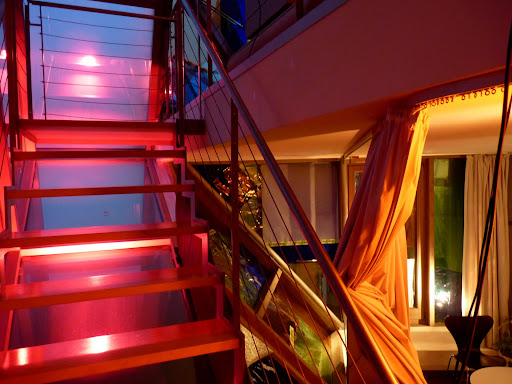Zum Hotel Chelsea und seinem aufsehenerregenden Dachgeschoß habe ich hier schon einmal einen Eintrag gemacht. Normalerweise sind die Fenster nicht so bunt, in der Martin-Kippenberger-Suite fanden Kunstaktionen statt, an denen ich weiter kein Interesse hatte, aber es bestand die Möglichkeit, die Zimmer zu besichtigen.