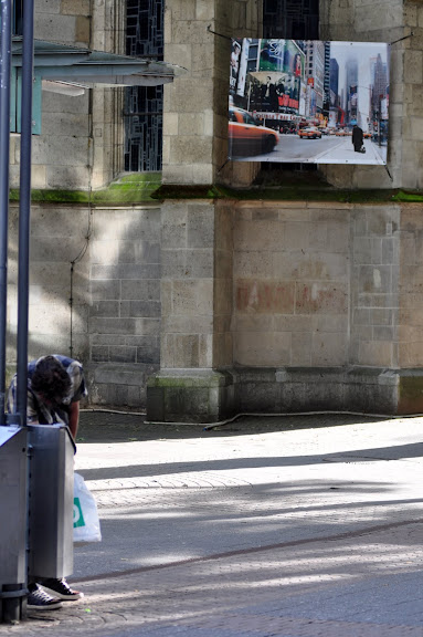 Altstadt, das klingt nach Fachwerkhäusern, engen Gassen, schummerigen Plätzen, gemütlich und urig, mag man sich gedacht haben, als man beschloß, diese neuen Laternen im Look des 19. Jahrhunderts aufzustellen, und wenn man sich Altstädte wie die in Rothenburg ob der Tauber oder Quedlinburg vorstellt, stimmt das ja auch. Die Kölner Altstadt ist allerdings im 2. WK zu 90% zerstört und hinterher größtenteils modern wieder aufgebaut worden, diese historisierende Laternenform (immerhin ausgestattet mit modernster LED-Technik) paßt nicht so richtig in die Umgebung.