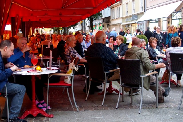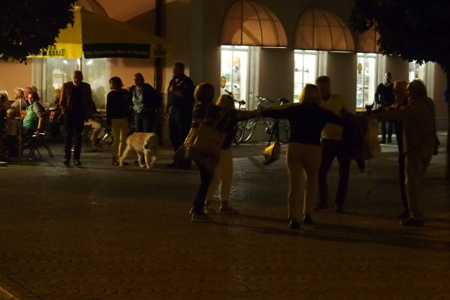 Wir verzichten und kehren um, folgen diesen beiden Nicht-Ostfriesen (der Ostfriesennerz ist gelb), trinken zum Abschluß in einem Biergarten in Schönau eine Apfelschorle und beobachten amüsiert, …